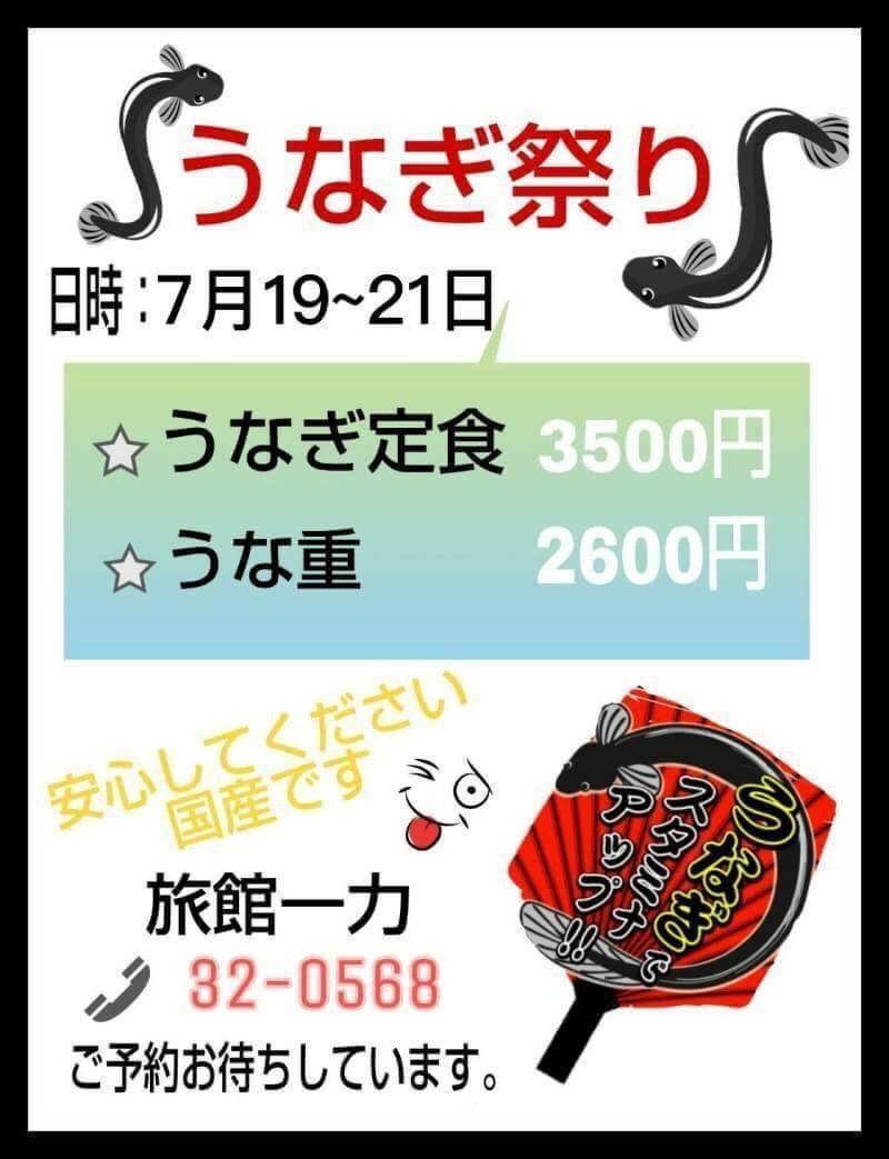 2018年7月19日~21日の期間、うなぎ祭りを開催します!